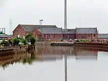 In June 2011 a planning application was submitted by Spencer Group for a waste-to-energy plant designed to generate 25.5 MW electrical and 3.4 MW gas energy via gasification and anaerobic digestion respectively. The plant was split over two sites, part on the site of the former cocoa and Spillers mills; and the second part to the north, west of Glass House Row.[62] The plant was to use approximately 150,000 tonnes of waste wood, plus 37,000 tonnes of locally sourced commercial and industrial waste.[63] The application was accepted in October 2011[64] and the project received a £19.9 million grant from the UK government (via the European Regional Development Fund) which was authorised by European Union in 2012.[65][66][67]
