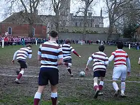 - ↑ Denness, Ian (2019). "10: Football in Winchester, in town and college, before 1884: 'very fast and interesting to look on at'". In Curry, Graham (ed.). The Early Development of Football: Contemporary Debates. Taylor & Francis. pp. 317ff. ISBN 978-1-00-002170-7.