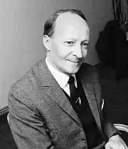 In 1973, Lutosławski attended a recital given by the baritone Dietrich Fischer-Dieskau with the pianist Sviatoslav Richter in Warsaw; he met the singer after the concert and this inspired him to write his extended orchestral song Les Espaces du sommeil ("The spaces of sleep").[66] This work, Preludes and Fugue, Mi-Parti (a French expression that roughly translates as "divided into two equal but different parts"), Novelette, and a short piece for cello in honour of Paul Sacher's seventieth birthday, occupied Lutosławski throughout the 1970s, while in the background he was working away at a projected Third symphony and a concertante piece for the oboist Heinz Holliger. These latter pieces were proving difficult to complete,[67] as Lutosławski struggled to introduce greater fluency into his sound world and to reconcile tensions between the harmonic and melodic aspects of his style,[68] and between foreground and background.[69] The Double Concerto for oboe, harp and chamber orchestra—commissioned by Sacher—was finally finished in 1980,[70] and the Third Symphony in 1983. In 1977, he received the Order of the Builders of People's Poland. In 1983, he received the Ernst von Siemens Music Prize.[71]