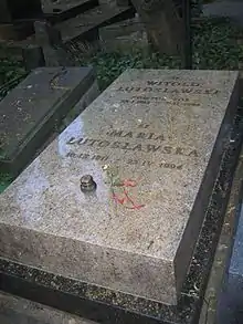 In 1993, Lutosławski continued his busy schedule, travelling to the United States, England, Finland, Canada and Japan,[89] and sketching a violin concerto,[90] but by the first week of 1994 it was clear that cancer had taken hold,[91] and after an operation the composer weakened quickly and died on 7 February, aged 81.[92] He had, a few weeks before, been awarded Poland's highest honour, the Order of the White Eagle (only the second person to receive this since the collapse of communism in Poland—the first had been Pope John Paul II).[92] He was cremated; his wife Danuta died shortly afterwards.[93]