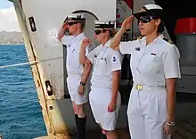 As a result of personnel shortages in the late 1980s the restriction against women in combat-related positions was dropped in May 1990, and women were for the first time allowed to serve in warships, RAAF combat squadrons and many positions in the Army.[14][16] Women were banned from positions involving physical combat, however, and were unable to serve in infantry, armoured, artillery and engineering units in the Army and clearance diving and ground defence positions in the RAN and RAAF respectively.[14][16] In 1990, three C-130 Hercules Air Force female pilots of No. 36 Squadron were employed in combat related roles.[17]