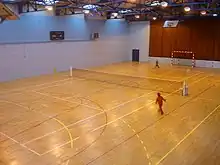 A wood court[1] is one of the types of tennis courts on which the modern sport of tennis, originally known as "lawn tennis", is played. Wood courts are generally a form of hardwood flooring. These courts were once used for indoor "covered court" tennis tournaments in the early 20th century, and occasionally were used to stage outdoor tournaments. They were largely supplanted by the development of indoor carpet courts in professional play.