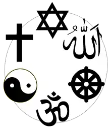 The scholars of religion Christopher R. Cotter and David G. Robertson described the "World Religions Paradigm" as "a particular way of thinking about religions which organizes them into a set of discrete traditions with a supposedly 'global' import."[1] It typically consists of the "Big Five" religions: Christianity, Judaism, Islam, Hinduism, and Buddhism.[2] As noted by Cotter and Robertson, the "Big Five" religions are often listed in an "Abrahamocentric order" which places the largest three Abrahamic religions—Christianity, Judaism, and Islam—before the non-Abrahamic religions Hinduism and Buddhism.[3] The category is sometimes also extended to include other religious groups, namely Sikhism, Zoroastrianism, and the Baháʼí Faith.[4]