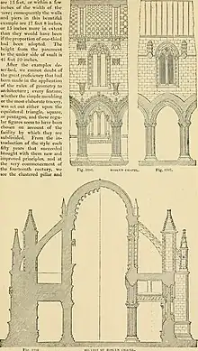 Papworth undertook antiquarian investigations on topics associated with his profession. He sought to define the periods when fir, deal, and house-painting were introduced into England, and to determine the extent of the use of chestnut-timber in old buildings.[4] He researched the architects of medieval buildings, and, while not himself a Freemason, their connection with freemasonry.[5][6][7] His concern was the correct attribution of the designs for the buildings erected in England during the Middle Ages.[1][8]