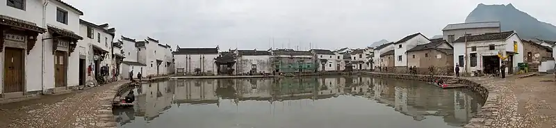 With 16 ancestral halls and 230 white-washed ancient residences that are well preserved, Xinye is acclaimed as the largest open-air museum of ancient residences in China.[3][7][8] Its architectural style is similar to that of the nearby historical Huizhou region which includes World Heritage Sites Hongcun and Xidi.[6]