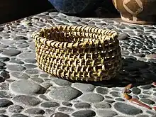 A traditional Yahgan basket, woven with smoked Juncus effusus by Abuela Cristina