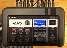 The DTX range consists of electronic drum kits and percussion controllers manufactured by the Yamaha Corporation. They currently cover levels from entry-level to pro-range. DTX kits use sampling for their sounds, meaning each kit has built-in digital recordings of real drums, and cymbals. When the drum or cymbal pads are hit, the digital recordings (or samples) are played back to replicate what is being played. On all kits, the sounds are editable – the pitch can be made higher or lower (tuned) and many other features. The higher the range of the DTX, the more functions there are editable.