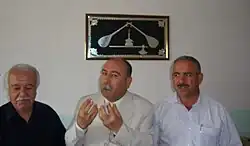 Yarsani men in Silêmanî, Iraqi Kurdistan. The picture on the wall is of the Kurdish tanbur, a Yarsani religious symbol.