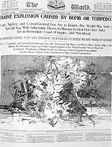 Pulitzer's treatment in the World emphasizes a horrible explosion