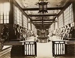 In 1913 two figures were exhibited in Paris (without their bases), and a third (with base) was acquired by the British Museum in 1914, see Seated Luohan from Yixian.[21] Now six figures are in museums in North America, with two surviving and one missing or destroyed in Europe, and one of the set in Japan. The Metropolitan acquired its two examples separately in 1921, by which time Boston, Philadelphia, Toronto and the Matsukata Collection in Japan already had theirs, and a further four were "owned by private collectors and dealers", so making a total of ten figures, "besides a great many small fragments, several hands and feet, and baskets full of broken pieces".[22]