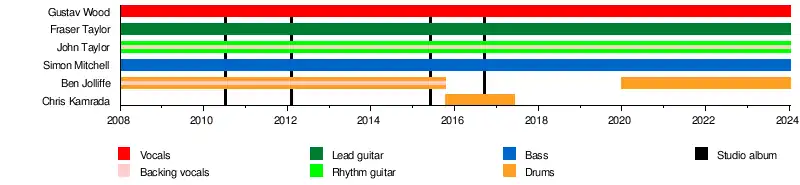 While members of the band had been together dating back to 2003, during these years, they were more identified as just a number of musicians who shared a similar passion for music in the same London underground music scene, and did not form as a serious band until 2008.[6][7][8] The band's lineup, upon becoming a formal band, consisted of Gustav Wood as the lead vocalist, Fraser and John Taylor both as guitarists, Simon Mitchell as the bassist, and Ben Jolliffe on drums.[7] The band began playing local live shows at bars and small events featuring music from a variety of different music genre.[9] They eventually began to garner more attention by securing spots in support of post-hardcore bands Funeral for a Friend and We Are the Ocean.[10] This exposure granted them the opportunity to work with Dan Weller and Justin Hill, from the influential progressive metal band Sikth, as producers.[10][11]