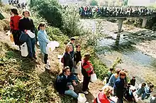 In Serbia and Serb-dominated territories, violent confrontations occurred, particularly between nationalists and non-nationalists who criticized the Serbian government and the Serb political entities in Bosnia and Croatia.[48] Serbs who publicly opposed the nationalist political climate during the Yugoslav wars were reportedly harassed, threatened, or killed.[48] However, following Milošević's rise to power and the outbreak of the Yugoslav Wars, numerous anti-war movements developed in Serbia.[49][50] Protests were held against the actions of the Yugoslav People's Army, while protesters demanded the referendum on a declaration of war and disruption of military conscription, resulting in numerous desertions and emigrations.[51][52][53]