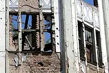 Border regions faced direct attacks from forces within Serbia and Montenegro. In August 1991, the Battle of Vukovar began, where fierce fighting took place with around 1,800 Croat fighters blocking the JNA's advance into Slavonia. By the end of October, the town was almost completely devastated as a result of land shelling and air bombardment.[70] The Siege of Dubrovnik started in October with the shelling of UNESCO World Heritage Site Dubrovnik, where the international press was criticised for focusing on the city's architectural heritage, instead of reporting the destruction of Vukovar in which many civilians were killed.[71]