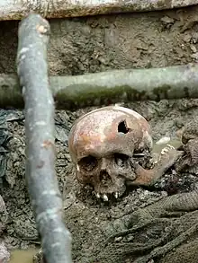 War rape occurred as a matter of official orders as part of ethnic cleansing, to displace the targeted ethnic group.[134] According to the Trešnjevka Women's Group, more than 35,000 women and children were held in such Serb-run "rape camps".[135][136][137] Dragoljub Kunarac, Radomir Kovač, and Zoran Vuković were convicted of crimes against humanity for rape, torture, and enslavement committed during the Foča massacres.[138]