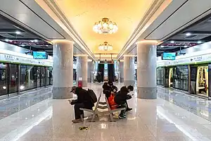 Yuyuantan Dongmen (Yuyuantan Park East Gate) station[1] (Chinese: 玉渊潭东门站; pinyin: Yùyuāntán Dōngmén zhàn) is a station on Line 16 of the Beijing Subway. It is located near the East Gate of Yuyuantan Park. The station opened on 31 December 2021.[2] It was the southern terminus of the line before the southern section to Yushuzhuang opened on 31 December 2022.