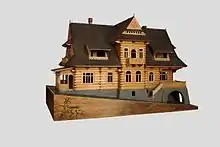 The Zakopane style also gained popularity beyond the Polish highlands. In 1900, the young Kraków-based architect Franciszek Mączyński won an international architectural competition organized by the Paris-based magazine Moniteur des Architectes with a design of a villa in the Zakopane style. There was also the Dom Ludowy in Sosnowiec, the Chata built for author Stefan Żeromski in Nałęczów, a series of villas in Wisła, Konstancin, Anin and Vilnius, as well as the train station in Saldutiškis, Lithuania.[4]
