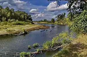The meandering Desna River runs from north to south along the west border of the park. The channel itself is 5–10 km from the park, while the park is on the first and second terraces.[2] The park is about 10 km wide (west-to-east) and 20 km north-to-south.