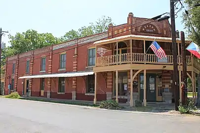 The Zapp Building, later known as the Country Place Hotel and Restaurant, is a historic building in Fayetteville, Texas, United States. It was built in 1900 by builders Stidham and Kurtz in the Romanesque Revival style for local merchant Hugo Zapp to replace a wooden building at the site which burned down. Zapp bought a shop at this prominent location at the northwest corner of the town square in 1876.[3] It was added to the National Register of Historic Places on June 23, 1983, and designated a contributing property to the Fayetteville Historic District by the registrar on July 10, 2008.[3][4]